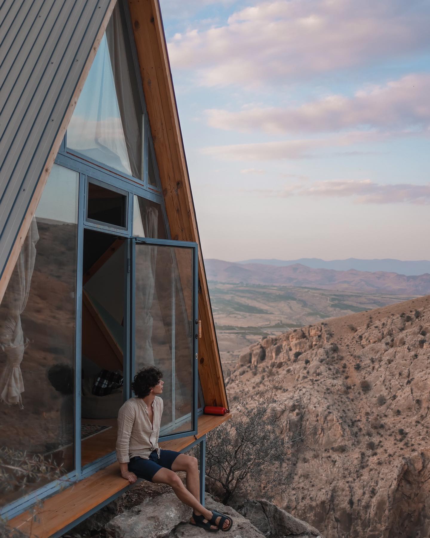 В «треугольнике» – два камерных этажа, крутая лестница, душ, дровяная печь и электрическая плита. Деревянный стол и простецкий раскладной стул, выставленные прямо над обрывом, даруют настолько фантастические виды, что разум сначала отказывается воспринимать эту совершенно неземную красоту.